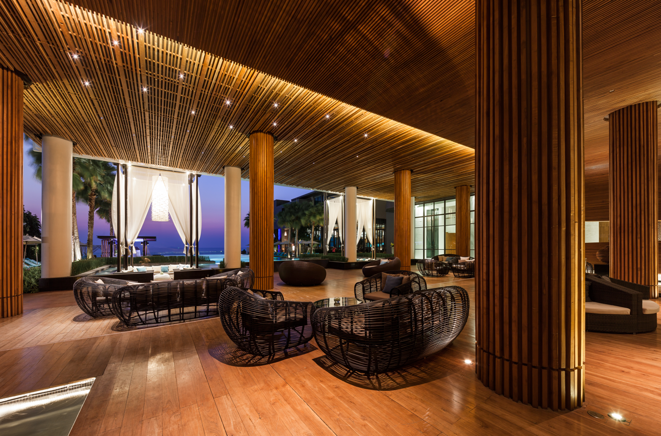 รีสอร์ทมีห้องพักและวิลล่ารวม 264 ยูนิต ทุกห้องมองเห็นวิวทะเลแบบพาโนรามา ภายในตกแต่งอย่างหรูหราในสไตล์ที่เป็นธรรมชาติ ตัวเลือกสำหรับการรับประทานอาหารมีทั้ง Radius Restaurant เปิดตลอดวัน มีอาหารจีนกวางตุ้งที่ Ming Xing ขนมหวานและเบเกอรี่จาก Mellow Bakery และบาร์บรรยากาศสุดเก๋อย่าง Sphere Lounge, Twinkle Pool Bar และ Walala Beach Bar สำหรับแขกห้องสวีทและวิลล่า จะได้สิทธิ์เข้าใช้ Dara Club Lounge ชั้น 24 เหมาะสำหรับชมพระอาทิตย์ตกกับบรรยากาศแสนโรแมนติก