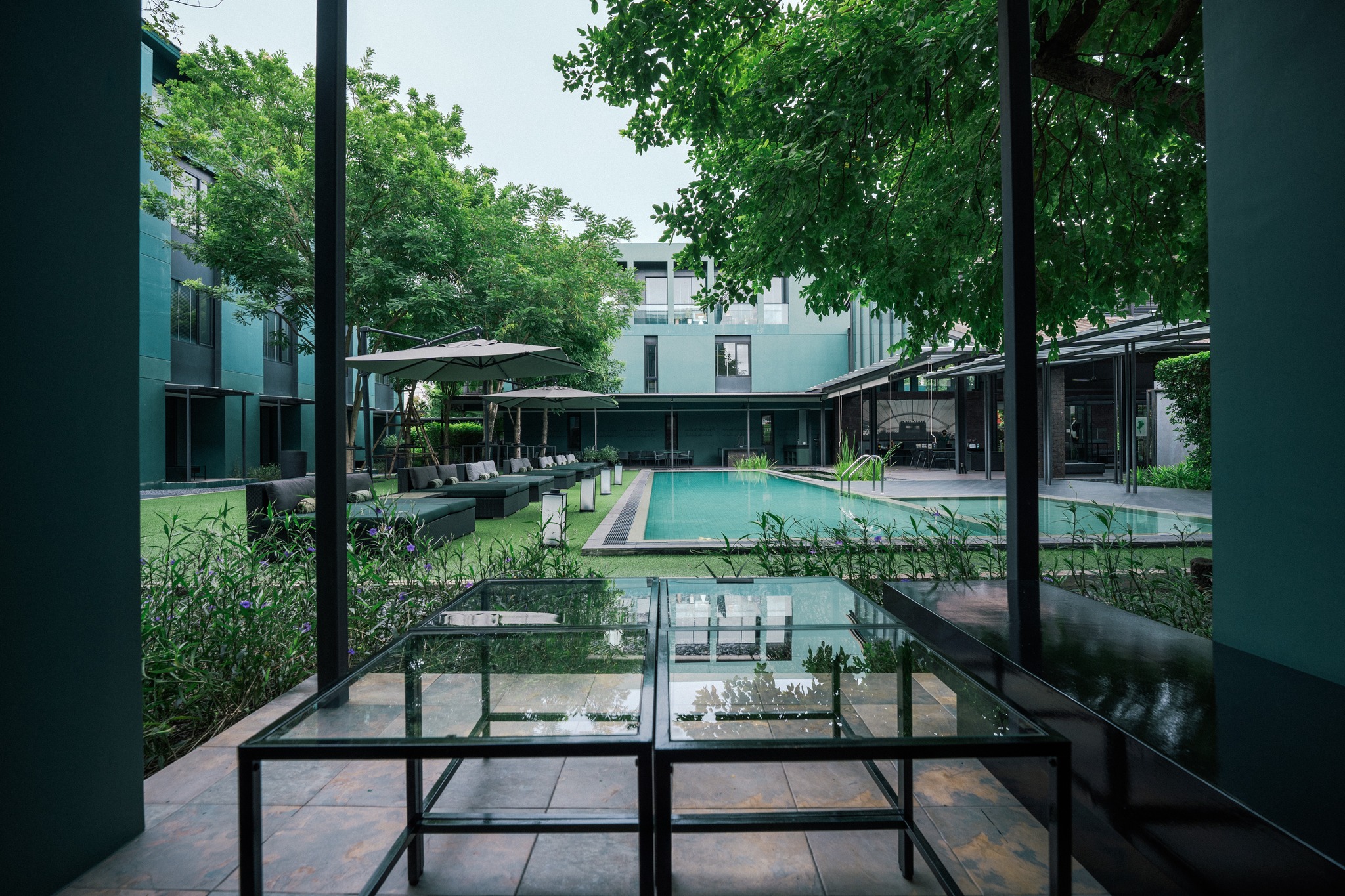 🌴 โซนลานภายในร่มรื่น พร้อมสระว่ายน้ำเกลือให้คุณได้ผ่อนคลายอย่างเต็มที่